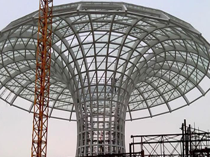 二、球形网架结构因其结构新颖,受力合理,自重轻、用钢量低等优点。如大型体育场馆球形龙岩螺栓球网架、公共场馆球形网架、电厂龙岩螺栓球网架、水泥工业球形网架、仓储物流球形网架、龙岩干煤棚工业球形网架、龙岩收费站龙岩加油站球形网架、展览中心、影剧院、商场、航站楼、候车厅、工厂龙岩车间、仓库、电视塔等球形螺栓球节点网架。国内球形网架结构主要分为:龙岩焊接球节点网架及螺栓球节点网架两种。螺栓球节点网架其构件工厂内加工量较大,现场安装便捷,适用于现场工期紧,龙岩施工条件、用电量受制约,网架形状复杂、龙岩杆件定位困难的异形结构。螺栓球节点球形网架系统基本由龙岩杆件、螺栓球、支撑支座等组成。按照节点形式可分为交叉龙岩桁架体系、四角锥体系、三角锥体系等。支撑方式多为固定支座支撑。对于大面积、大跨度及有特殊受力或伸缩要求的网架结构可采用橡胶支座、滑移支座、球铰支座等支撑形式,以满足结构自身的受力稳定、均衡,便于内力释放等设计要求。